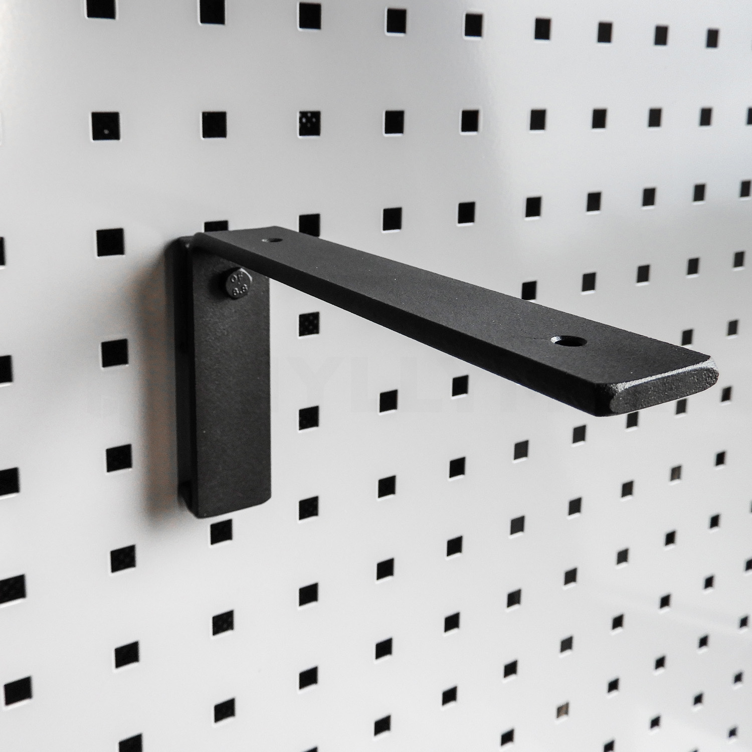 Reikälevyyn ripustettava hyllynkannatin joka mahdollistaa pienen puuhyllyn/ esittelyhyllyn käyttöä reikälevyseinässä. Kulmaraudan ripustuslaatta on samanlainen kuin perinteisissä reikälevykannattimissa.