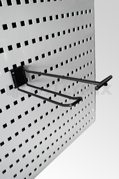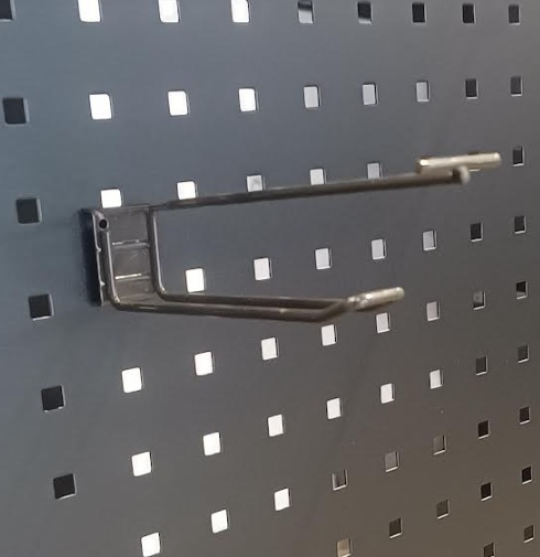 Käytetty mustanharmaa kaksoislankakannatin reikälevylle. Valmistettu Ø4 mm langalla, pituus on 15 cm.