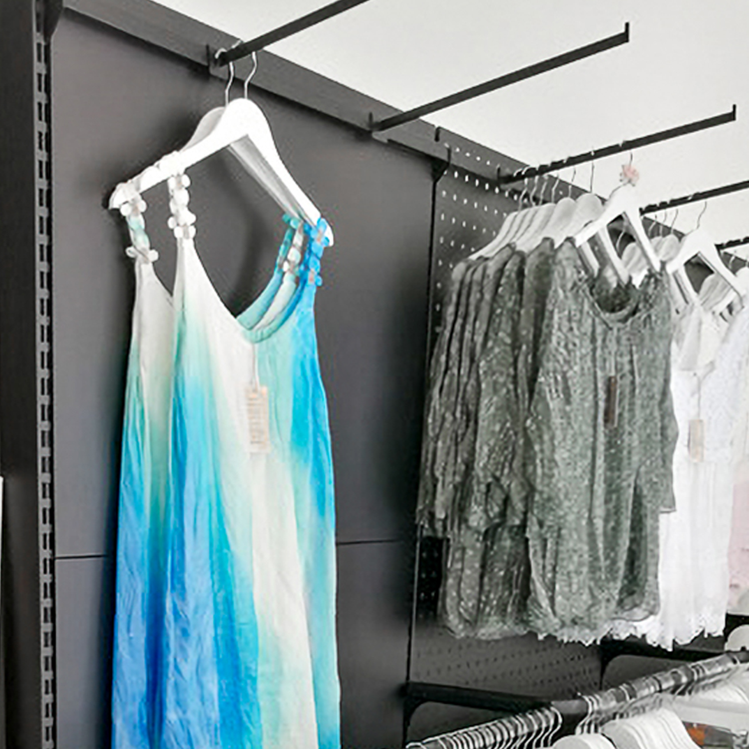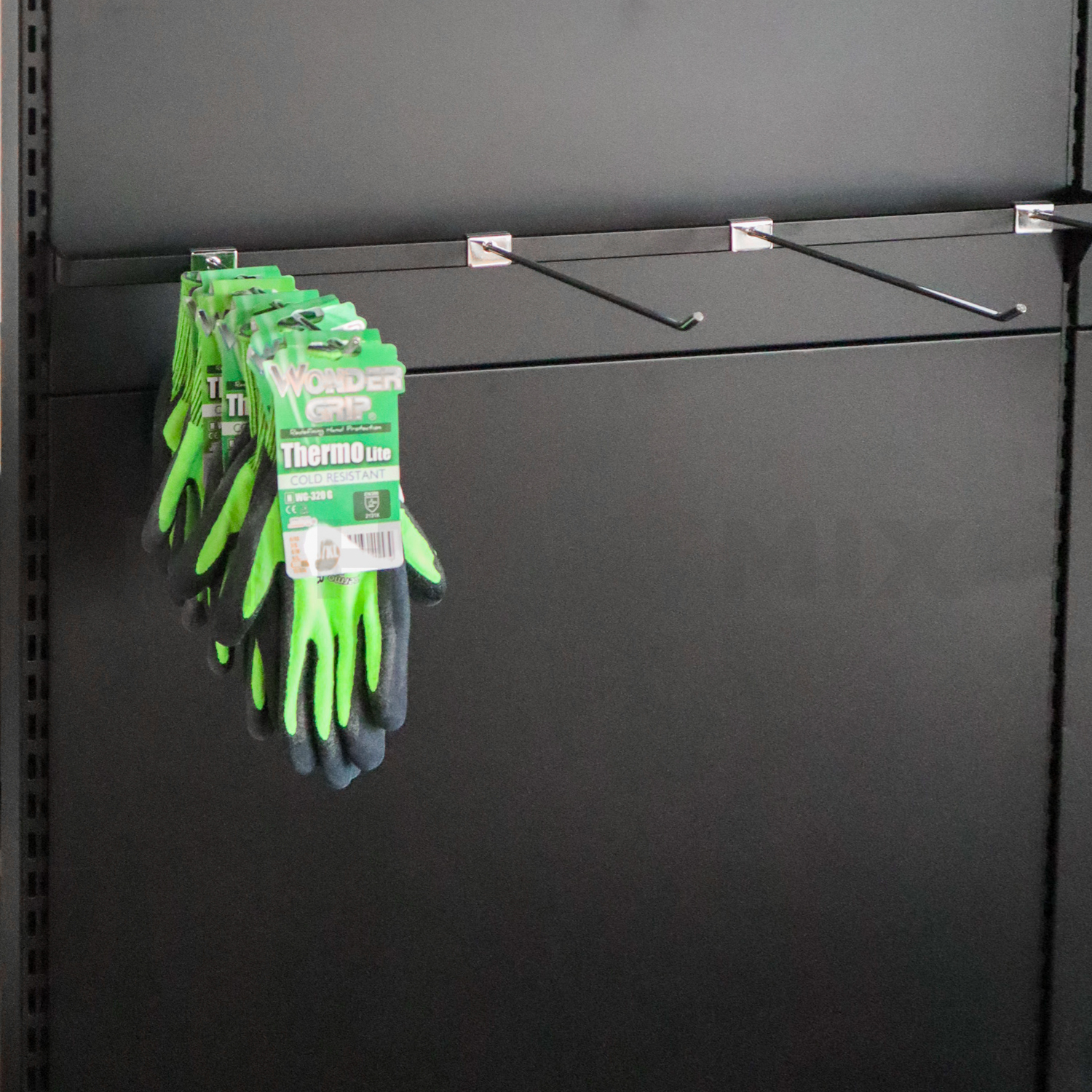 Musta käytetty lattarekki 90 cm leveään myymälähyllyjaksoon.
