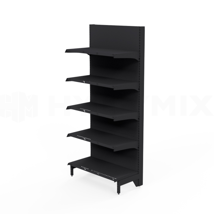 Tämä tuote sisältää valitun kokoisen teräslevytausta hyllystön rungon sekä viisi terästasoa per jakso.