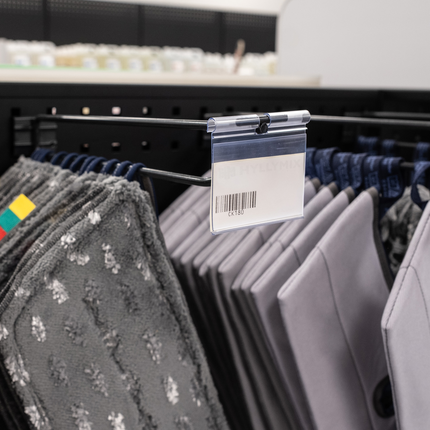 Heiluritasku tuotepiikkien päässä pitävät myyntipisteiden ja tuotealueiden näkymät avarana, mutta hinnat ja tuotetiedot näkyvissä.