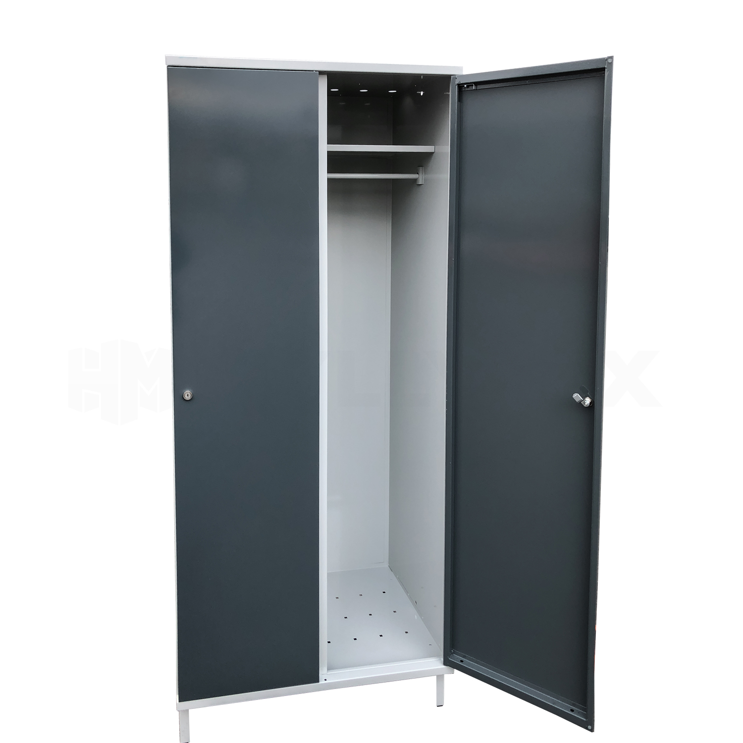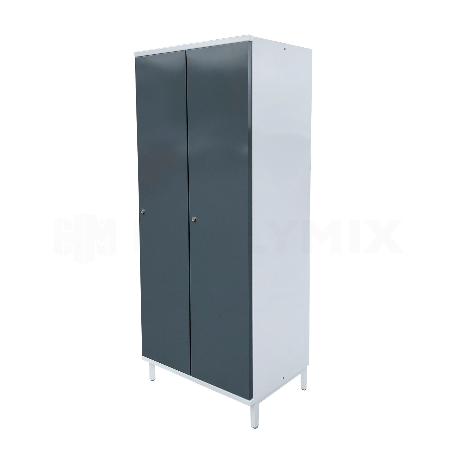 Tukeva ja laadukas kaksi ovinen pukukaappi pitkällä ovella. Tasakattoinen pukukaappi on 30cm leveällä ovilehdellä.  Teräsrunkoinen vaatekaappi on kokoonhitsattu  ja sisältää hattuhyllyn, vaatetanko jossa kaksi ripustuskoukkua ja ovissa Burg sylinterilukko kahdella avaimella. Kaapin pohjassa tuuletusaukot.