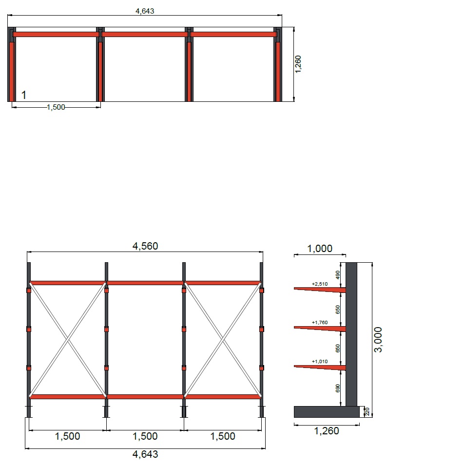 Maksimi kantavuus per pylväs: 1260 kg