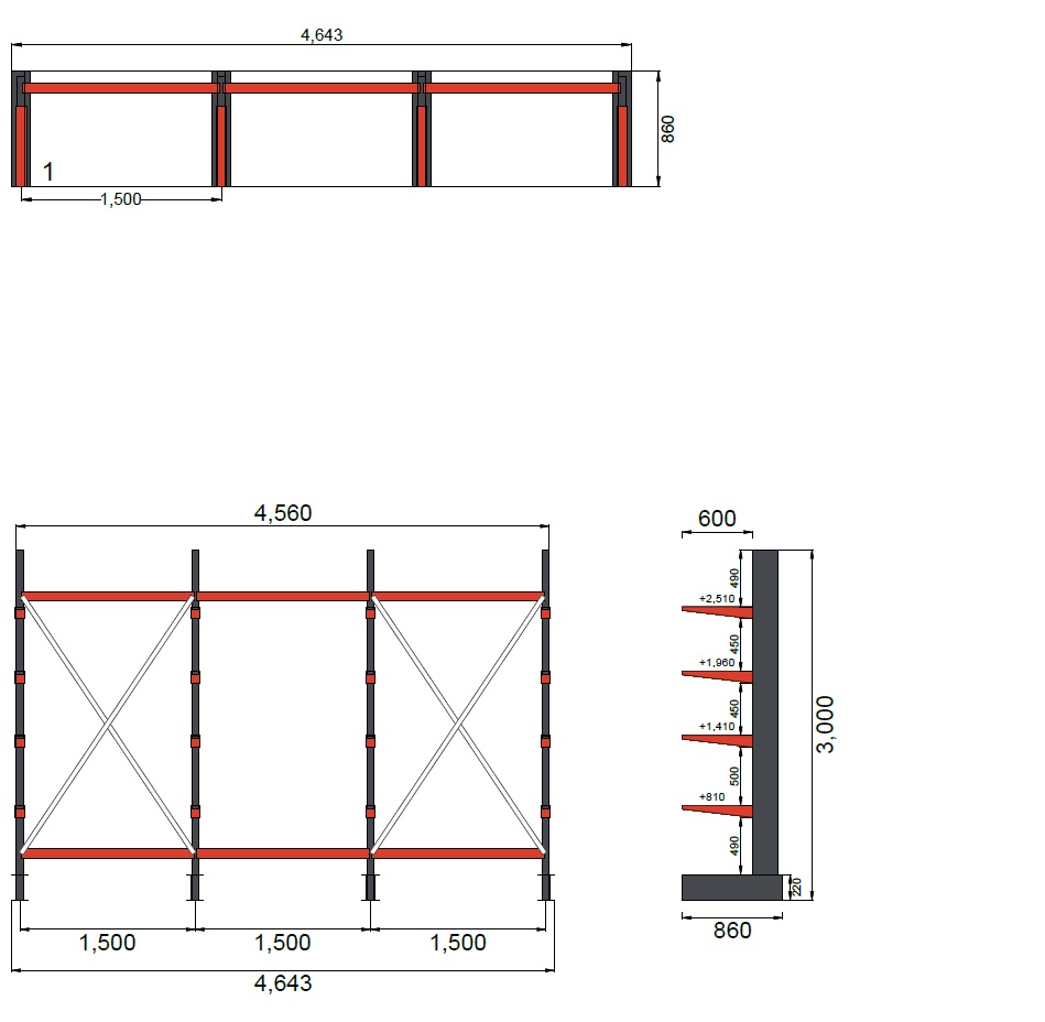 Yksipuoleinen kevyt ulokehylly (3000 mm): Optimaalinen ratkaisu pitkän tavaran varastointiin