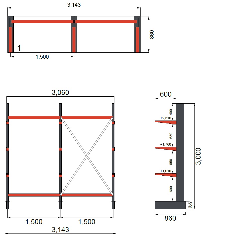 Yksipuoleinen kevyt ulokehylly (3000 mm): Optimaalinen ratkaisu pitkän tavaran varastointiin