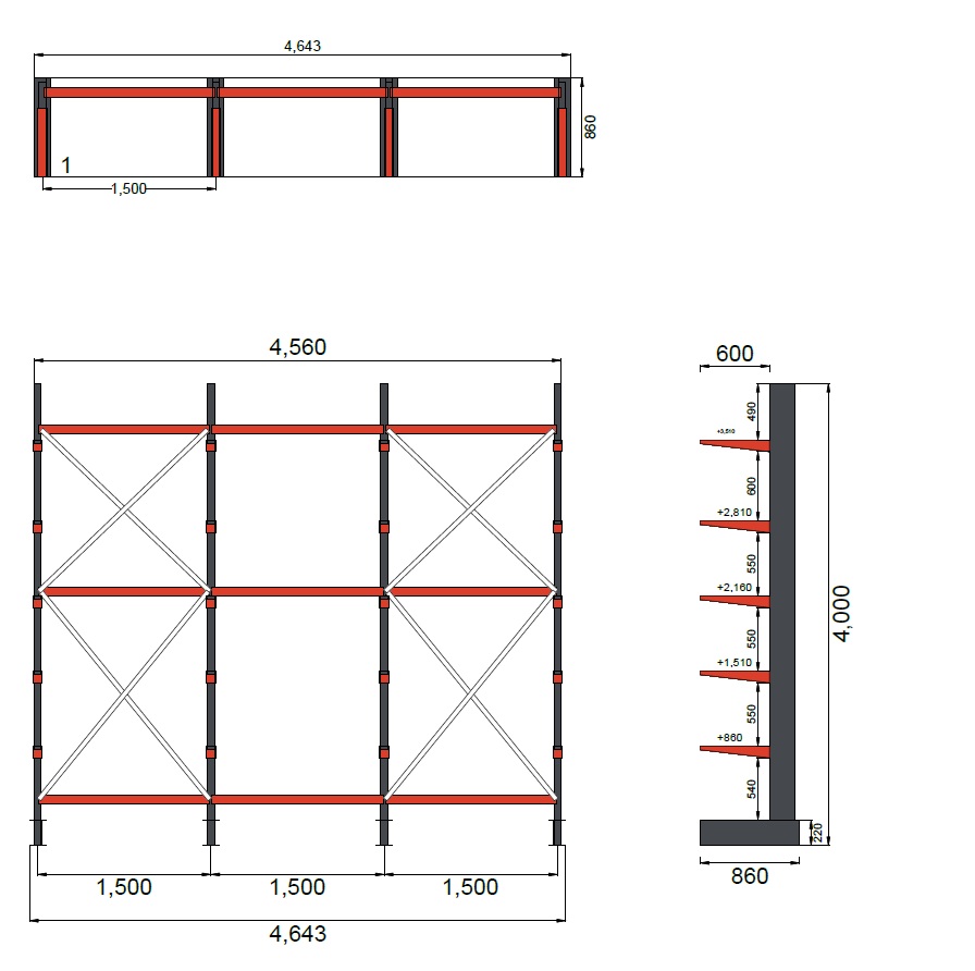 Leveys: 4643 mm (3×1500 mm väliköt)