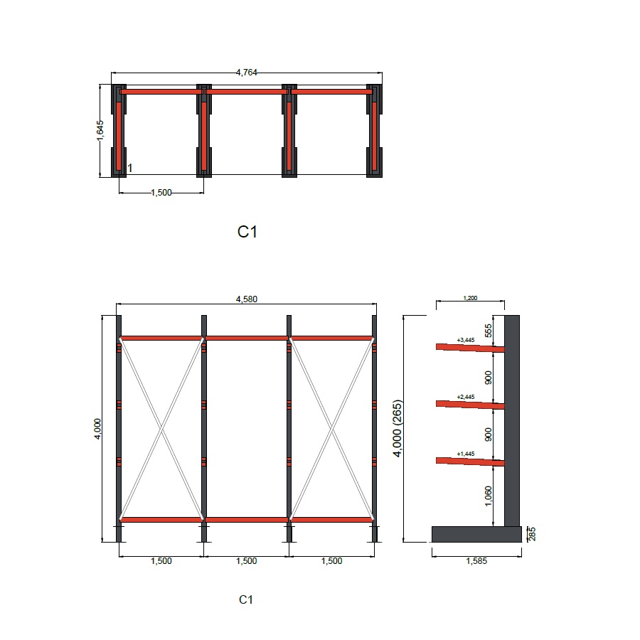 Pylväsväli: 1500 mm