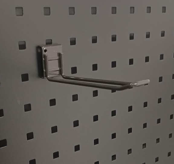 Begagnad brunsvart dubbeltrådad spjut till perfotavla/ verktygstavla. Tillverkad av 4 mm tråd och är 150 mm lång.