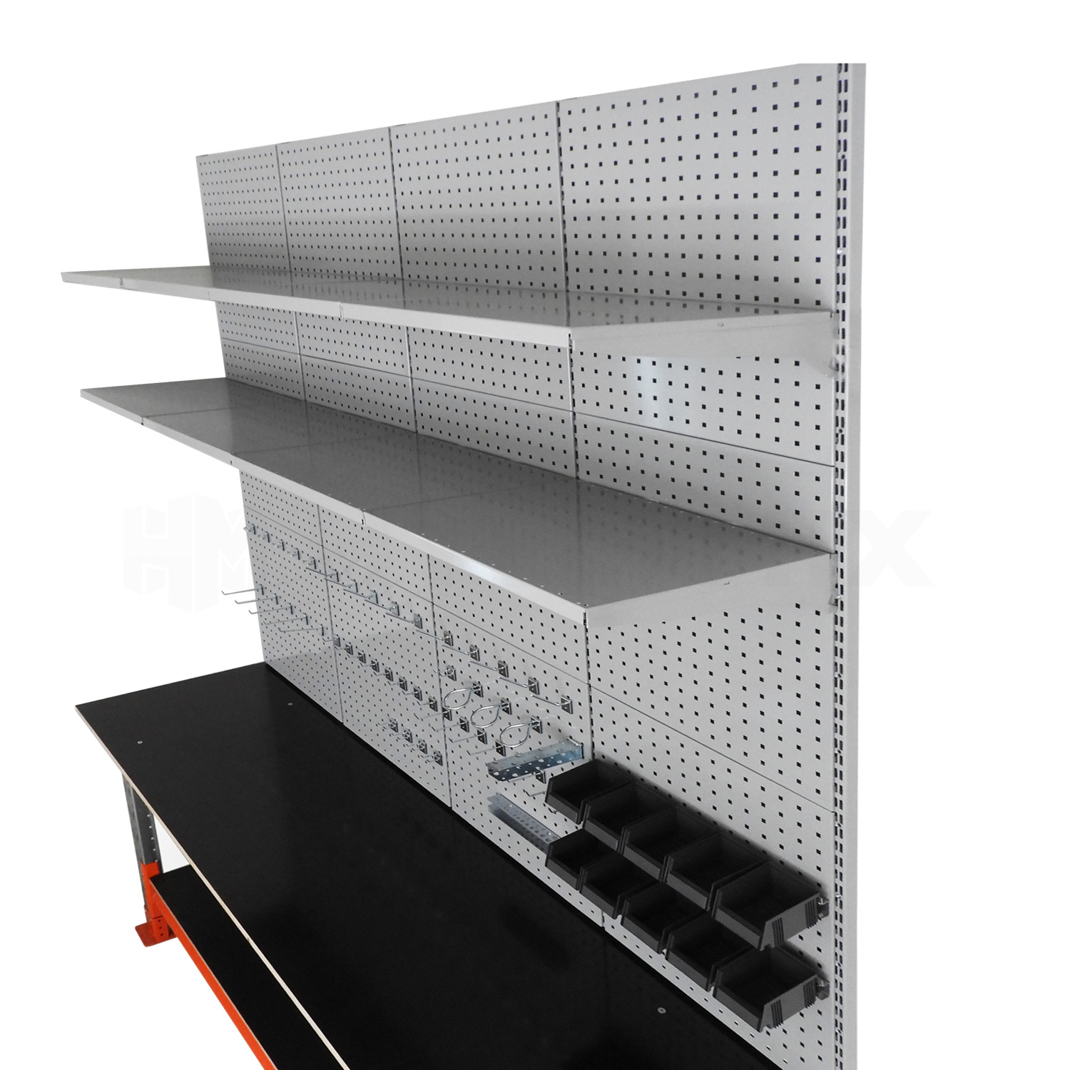 Väggskenorna möjliggör användning av 60, 90 eller 120 cm breda sektioner. Grundsektionen som består av två väggskenor fortsätts alltid med 1 skena tills önskad helhetsbredd nås.