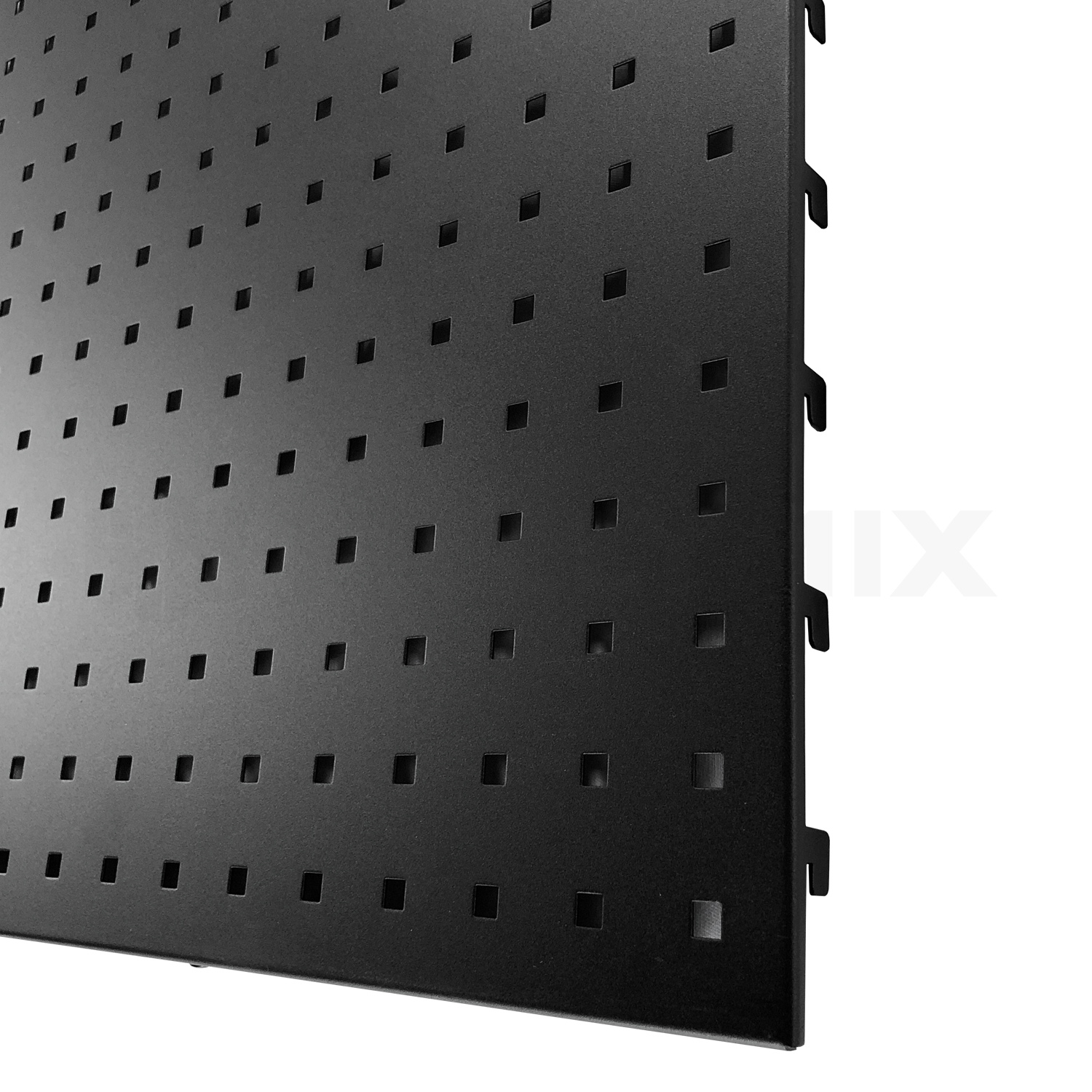 Ny Pikavl perforerad ryggplåt. Ryggplåtens höjd är 70 cm och bredd 90 cm. Håldelningen mellen hålen är 38 mm och hålets storlek är 9 mm.